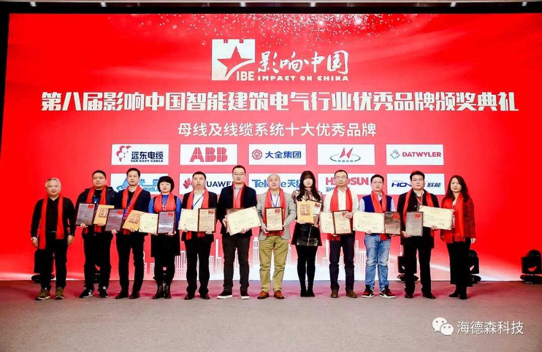 On December 20, 2019, sponsored by China Construction Technology Group Co., Ltd., Asia-Pacific Construction Technology Information Research Institute Co., Ltd.,《Intelligent Building Electrical Technology》magazine, China Survey and Design Association Building Electrical Engineering Design Branch, China Building Energy Conservation Association Building The "Eighth 'Influencing China' Intelligent Building Electrical Industry Excellent Brand" selection event guided by the Electrical and Intelligent Energy Conservation Professional Committee held an award ceremony in Beijing.At the same time, the list of winners of the top ten outstanding brands "Busbar and Cable System" was announced.
