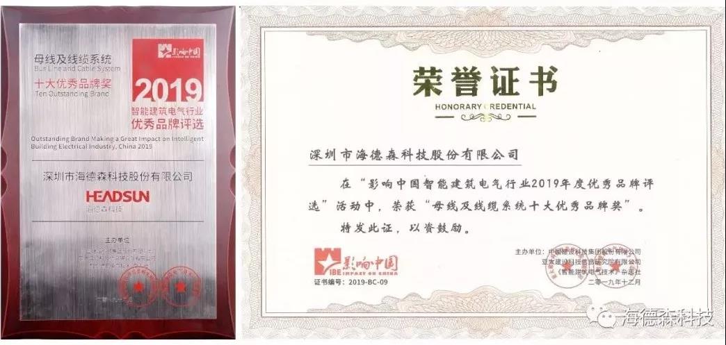 Warmly celebrate Headsun's "Busbar and Cable System" won the industry's top ten outstanding brand awards